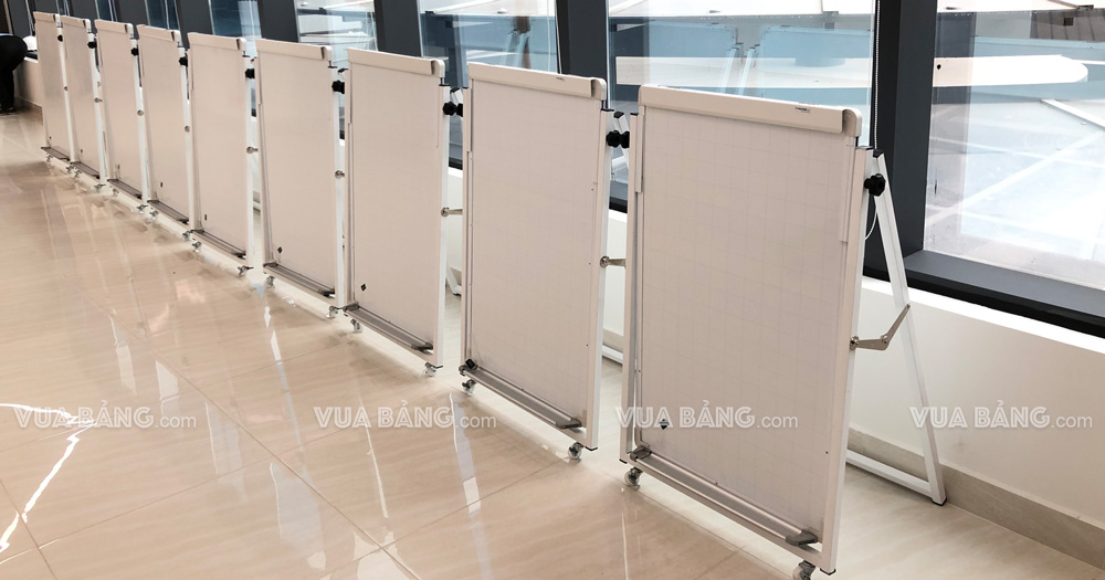 Bảng Flipchart là loại bảng có kích thước nhỏ gọn mang tính cơ động và đa năng nhờ chân bảng có thể thu gọn cũng như điều chỉnh cao thấp một cách dễ dàng. Trong đó bảng Flipchart Chân Gấp được 90% khách hàng lựa chọn vì sự tiện lợi cũng như giá thành phù hợp nhất. Bảng Flipchart chân gấp có thể viết bút lông (bút dạ) hoặc kẹp giấy để viết trực tiếp lên giấy.. rất thích hợp sử dụng cho các cuộc họp, hội thảo, thuyết trình, giảng dạy trên lớp và tại nhà.v.v.