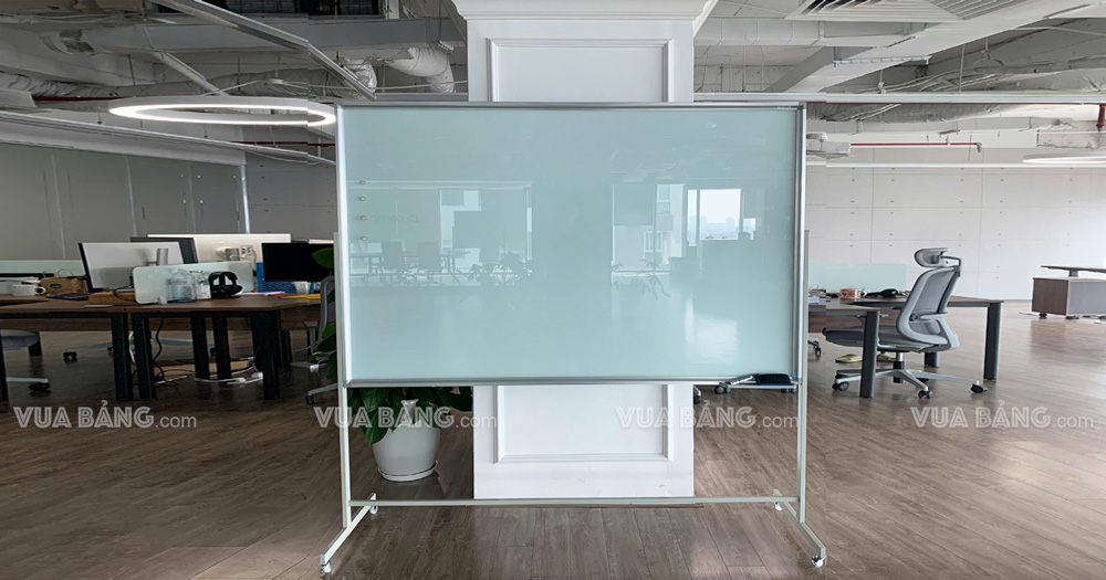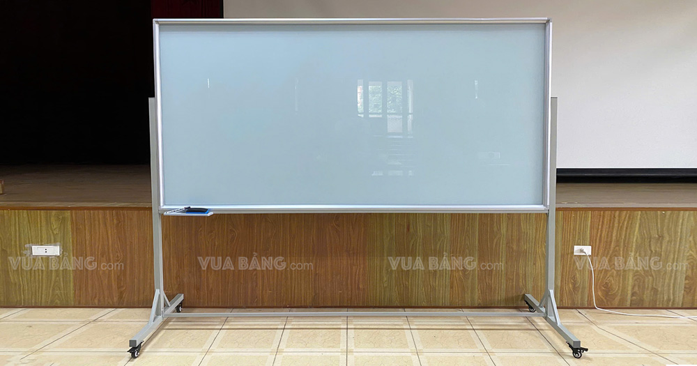 Bảng kính di động là là loại bảng được làm bằng kính viết bút lông (bút dạ) có thể xoá dễ dàng, bảng có khung và chân được làm bằng thép hộp sơn tĩnh điện cùng 4 bánh xe di chuyển. Bảng kính di động với ưu điểm về thẩm mỹ & độ bền cao nên phù hợp với nhiều không gian như: văn phòng, trường học, nhà máy v.v